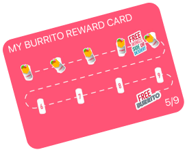Create your perfect burrito or bowl and earn one stamp for every main purchased.